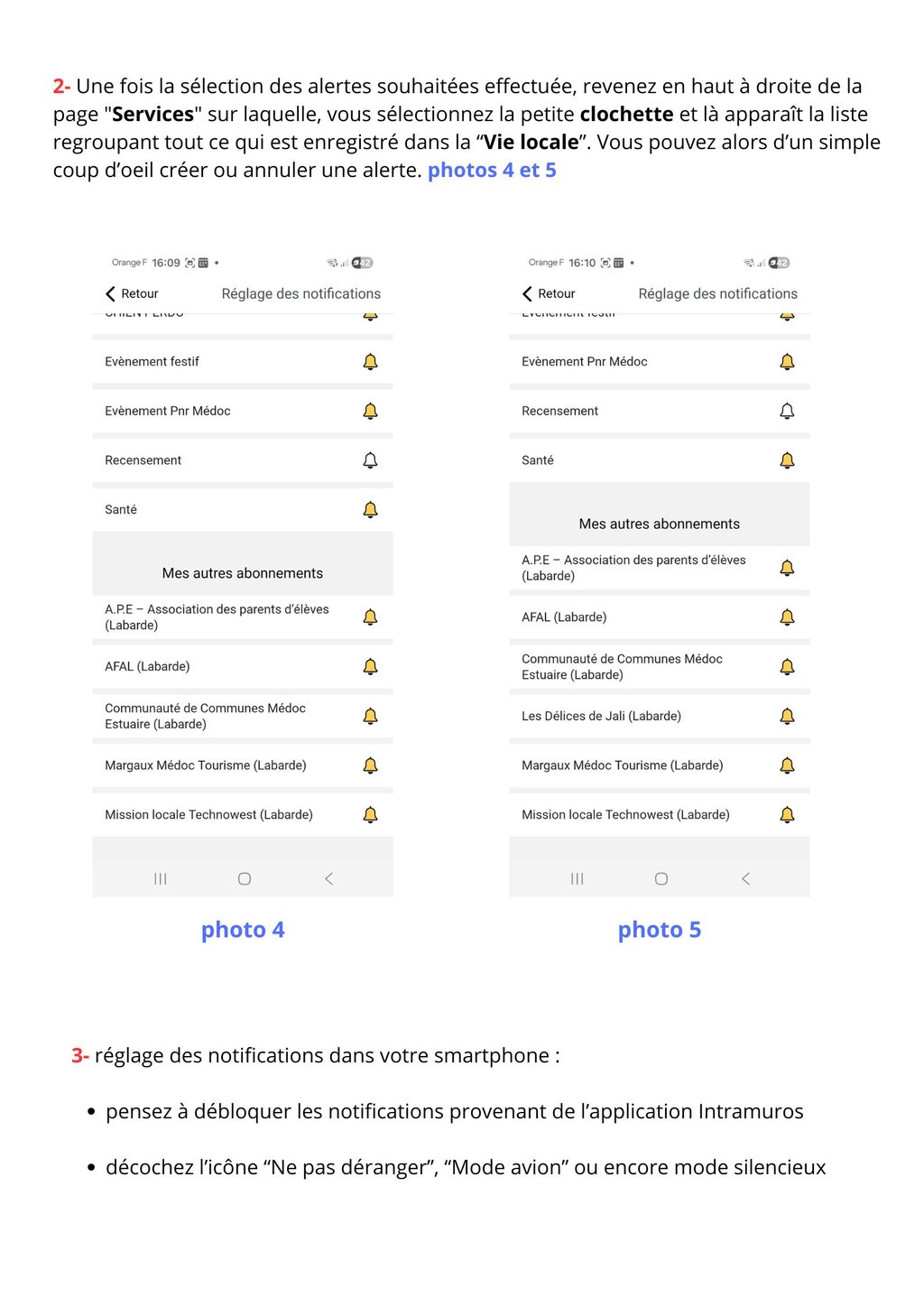 Vous souhaitez rester informés en temps réel de toutes les actualités relatives à votre commune, tels que les événements, les commerces, les associations ou autres structures administratives, mais vous ne parvenez pas à recevoir les notifications de l'application Intramuros les concernant sur votre smartphone ?